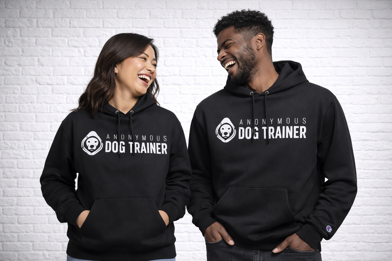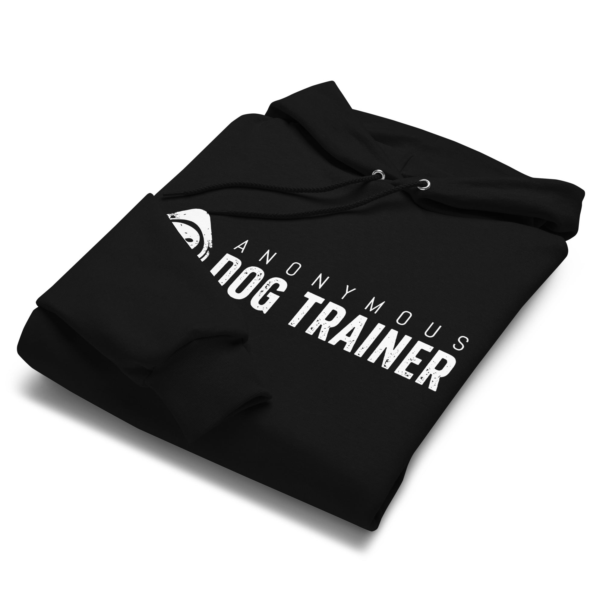 The front of the hoodie features the “ANONYMOUS DOG TRAINER” design in bold white lettering, paired with the signature dog logo mark. The graphic is clean, centered, and intentionally minimal, giving the hoodie a strong, confident presence without being loud.